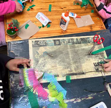 I set up a little station at my local taqueria for an afternoon of crafting for all ages. I decided on a simple, yet detailed project that I thought would be great for grown ups and for kids. In my museum education experience, I learned how to develop an art project that's suitable for drop-in occasions. This means that participants need to be able to take their projects home without worrying about it getting paint on their car seats, and it can't fall apart. Good tools for make-and-takes are glue sticks, markers, paint sticks, tape... those sorts of supplies. And, to give guests a head start, I would typically do some prep work so that they get to do the best part of the project- the finishing touches.